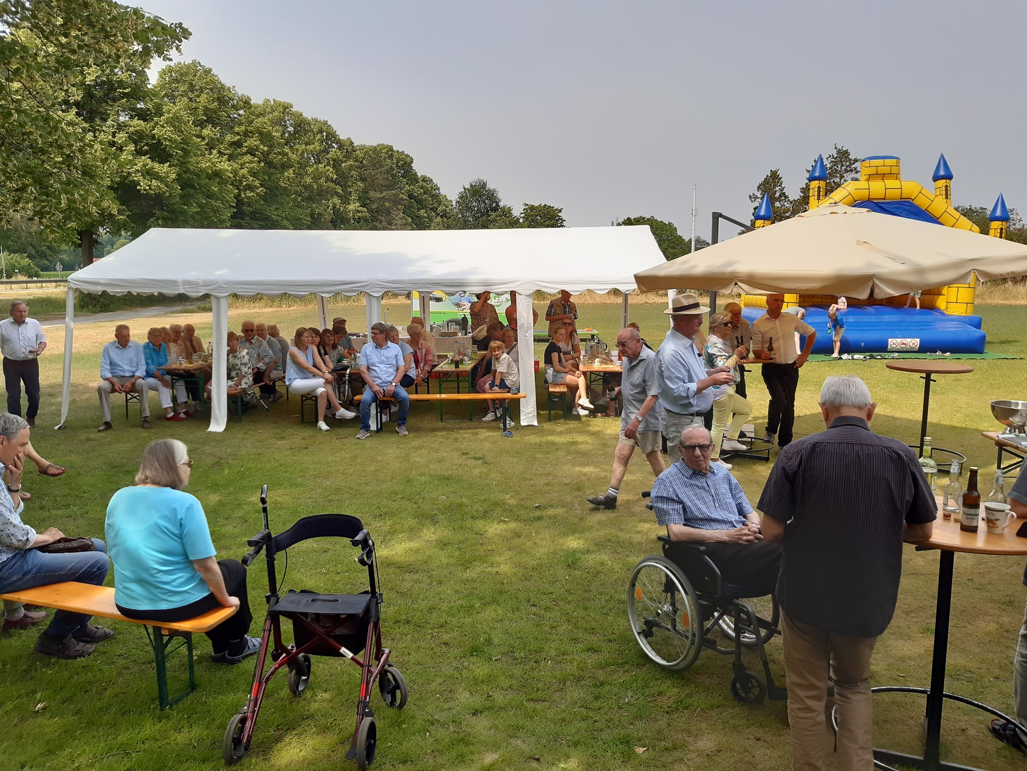 Am Sonntag den 18. Juni 2023 wurde das RGH-Grundstück festlich eingeweiht. Zunächst hatte Domkapitular Dr. Michael Höffner das Grundstück und die neuen Bäume festlich eingesegnet. Dann nahmen alle, die eine Scharlach-Eiche oder Sandbirke gestiftet hatten, an einer Verlosung teil. Hier wurden die einzelnen Bäume den Stiftern zugelost und anschließend jeweils eine Metall-Plakette mit den entsprechenden Namen an den Bäumen angebracht. Für die Kleinen war eine Knaxburg aufgebaut und bei Würstchen und kühlen Getränken fanden anschließend gute Gespräche und Begegnungen statt.