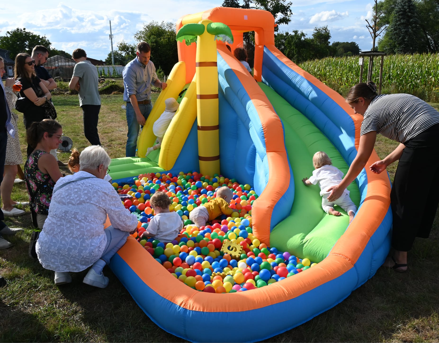 Die kleinsten Gäste hatten ihren Spaß auf der kleinen Hüpfburg. Die 1. Polonaise durch das Gemeindehaus wurde zu später Stunde vom rüstigen Jubilar angeführt. Für den 100. Geburtstag ist das