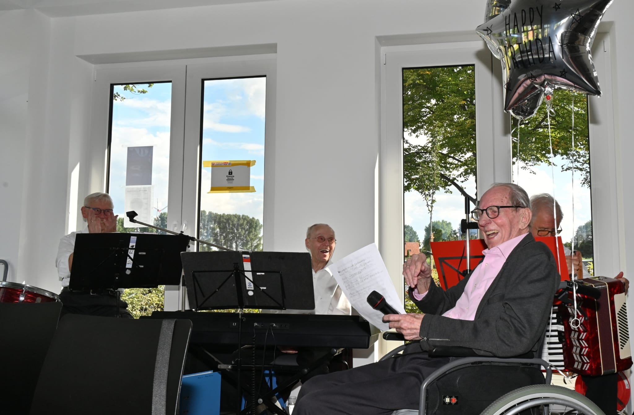 Wie bereits bei der Grundsteinlegung angekündigt, feierte der Jubilar seinen 99. Geburtstag mit seiner großen Familie, langjährigen Wegbegleitern und Live-Musik im Gemeindehaus.