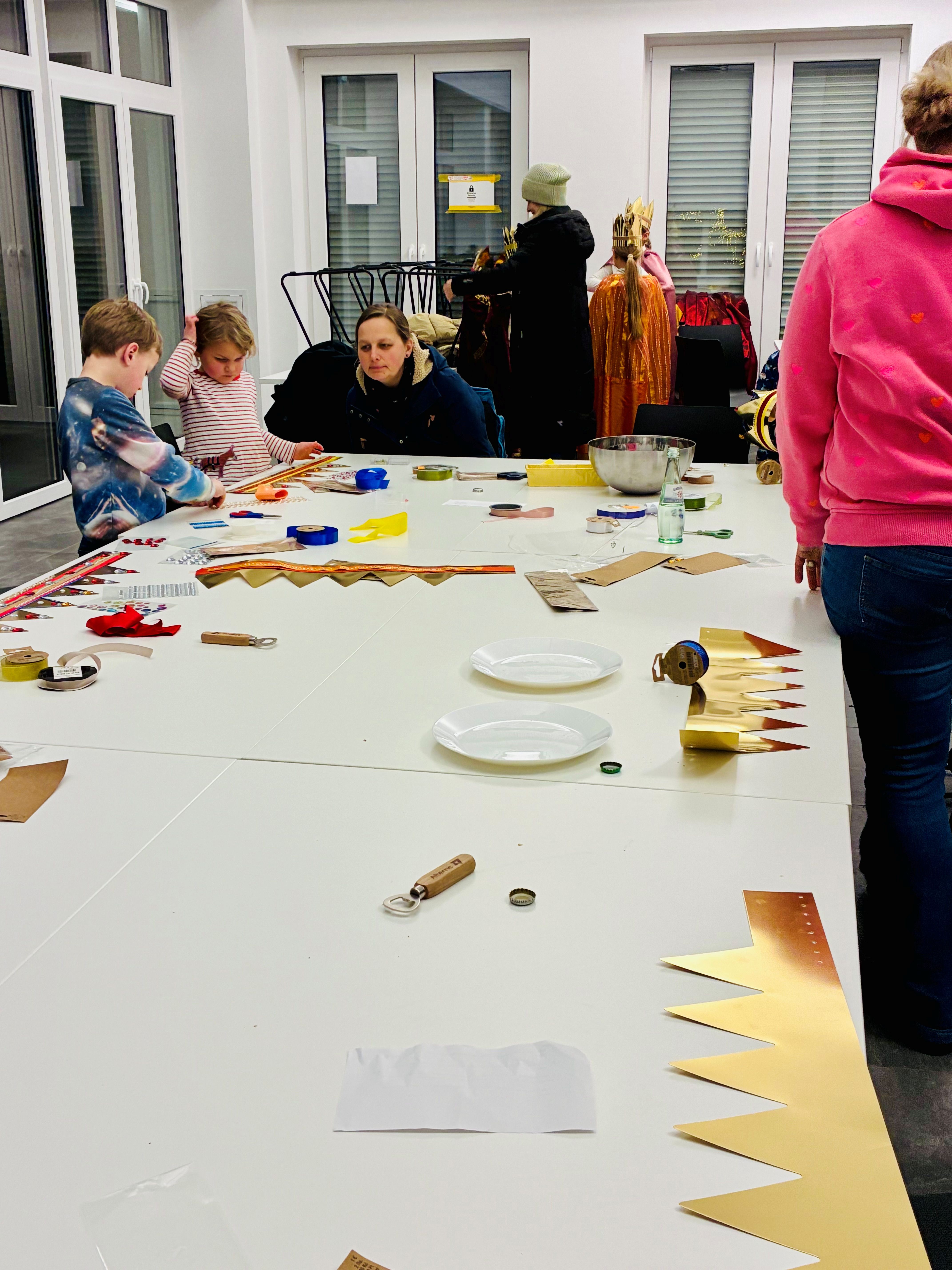 Kreativ wurde es beim Basteln der Kronen: Mit viel Glitzer, Strass und Steinchen entstanden individuelle Kunstwerke, die später stolz getragen wurden.