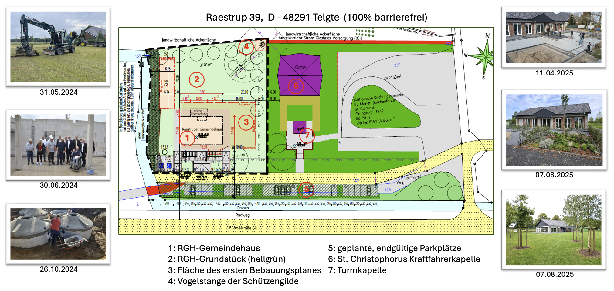- 2025: Fertigstellung des Hauses und der Außenanlagen im Herbst. Einweihung als „RGH-Gemeindehaus“.